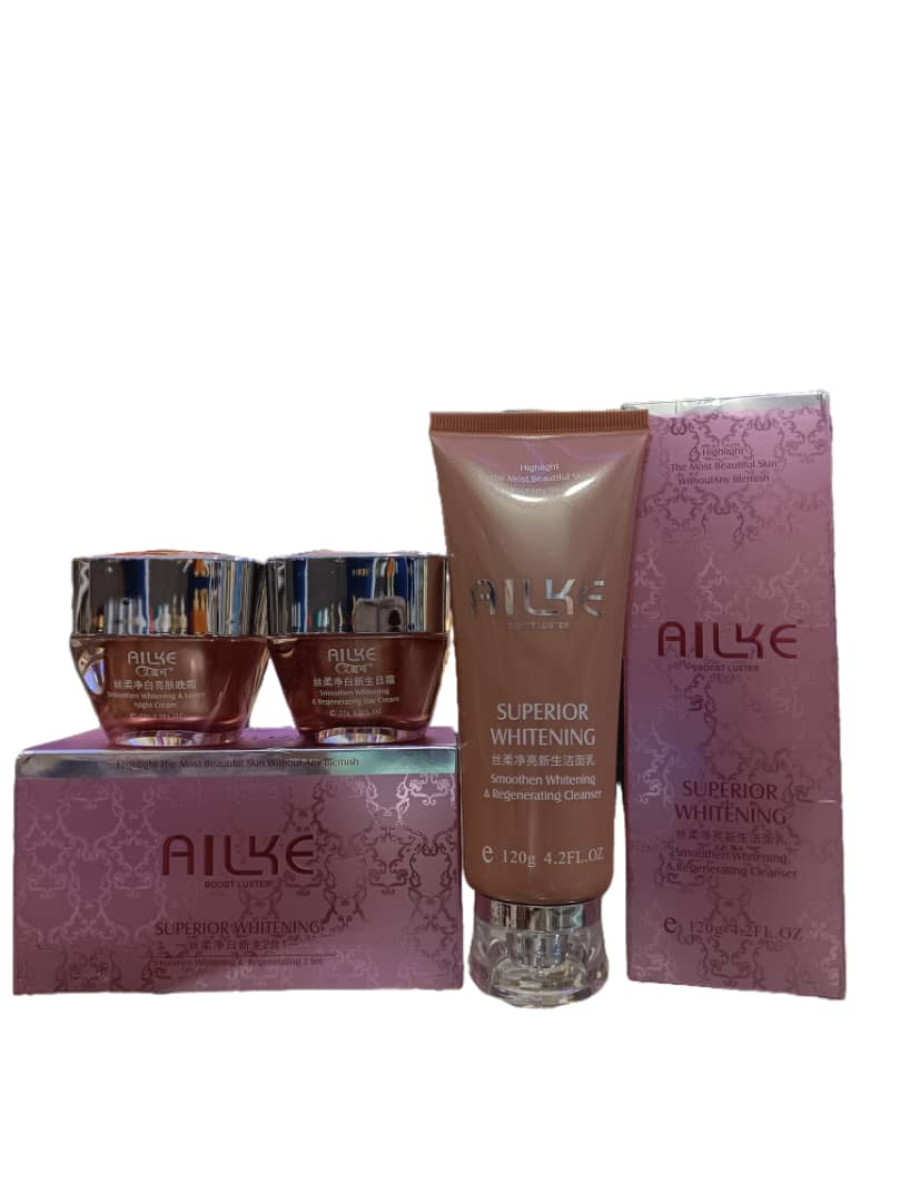 Ailke Superior Whitening Facial Set, comprising a cleanser and moisturizer, aims to enhance skin radiance and smoothness.