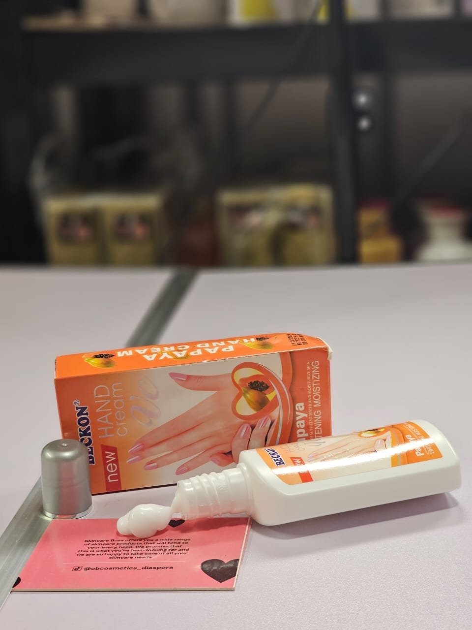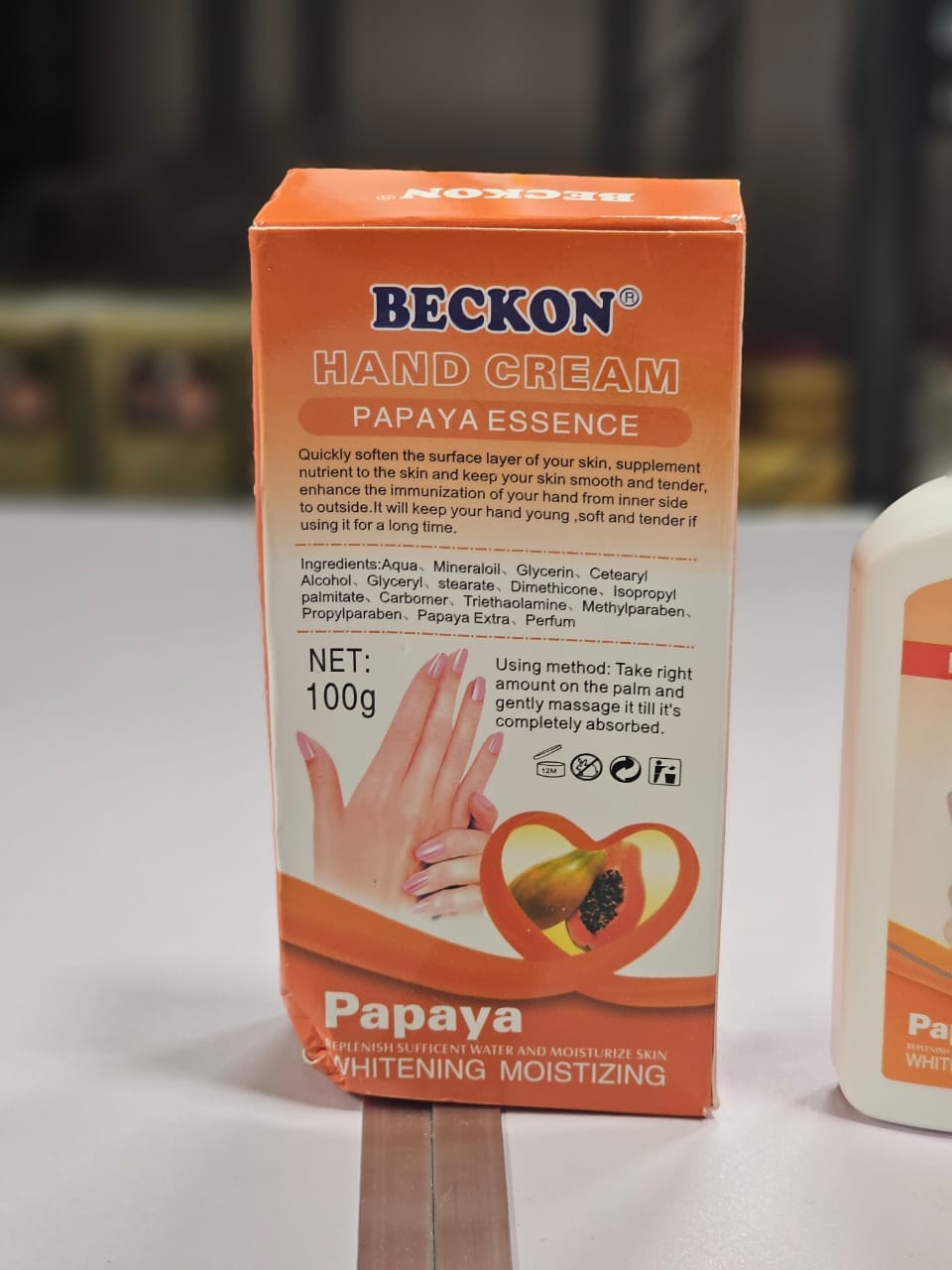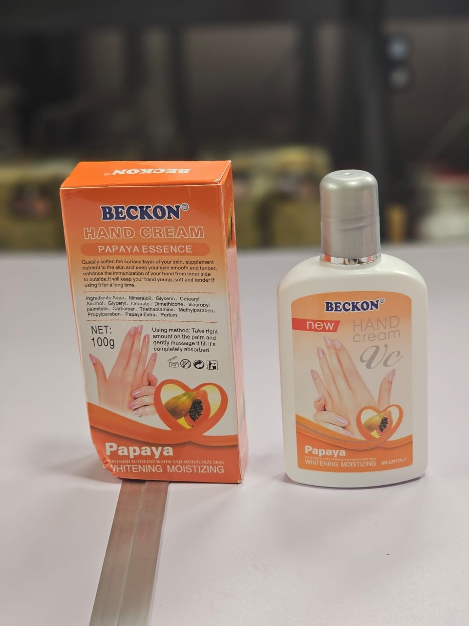 Beckon Papaya Essence Hand Cream Moisturizing and Whitening is a luxurious nutrient-rich moisture treatment infuses skin with hydrating Coconut Oil.