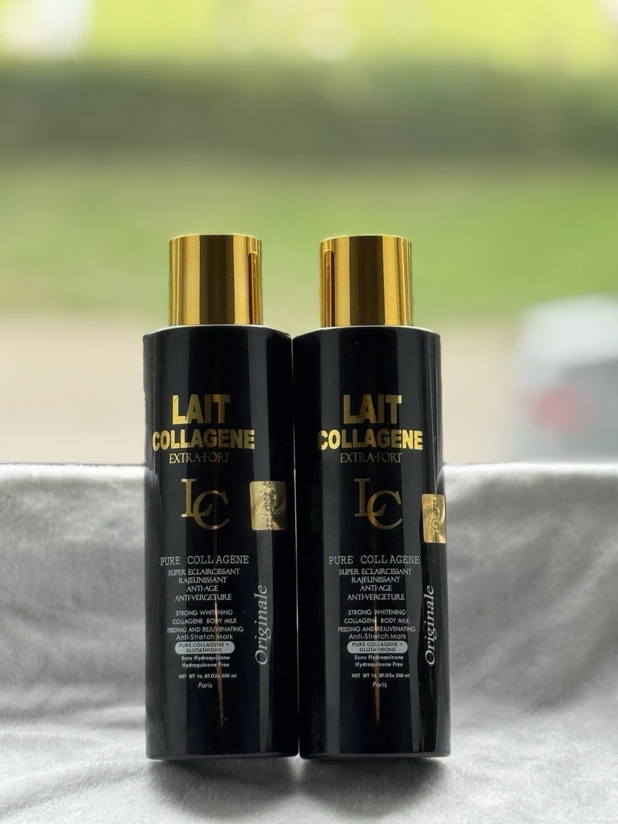 Lait Collegen Extra-Fort Strong Whitening Body Lotion 500ml (7days Action). New product alert. Lait collagen extra fort is a strong whitening body milk. NO HYDROQUINOUN Formulated with collagen, glutathione, Albutin, kojic. This lotion cleanser your skin without any stains 👌use twice daily