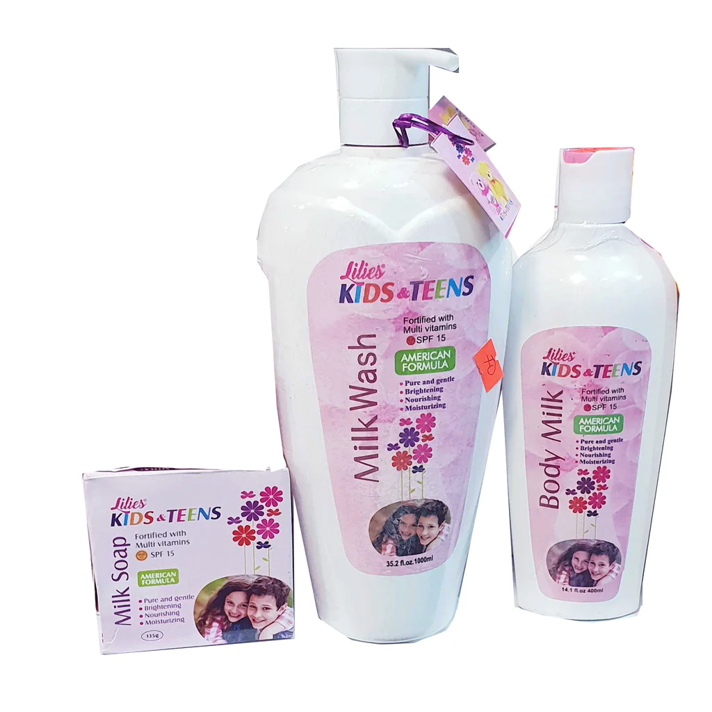 Lilies Kids and teens body milk gives your body daily rejuvenation, Moisturizing with Mild skin brightening enhancers.